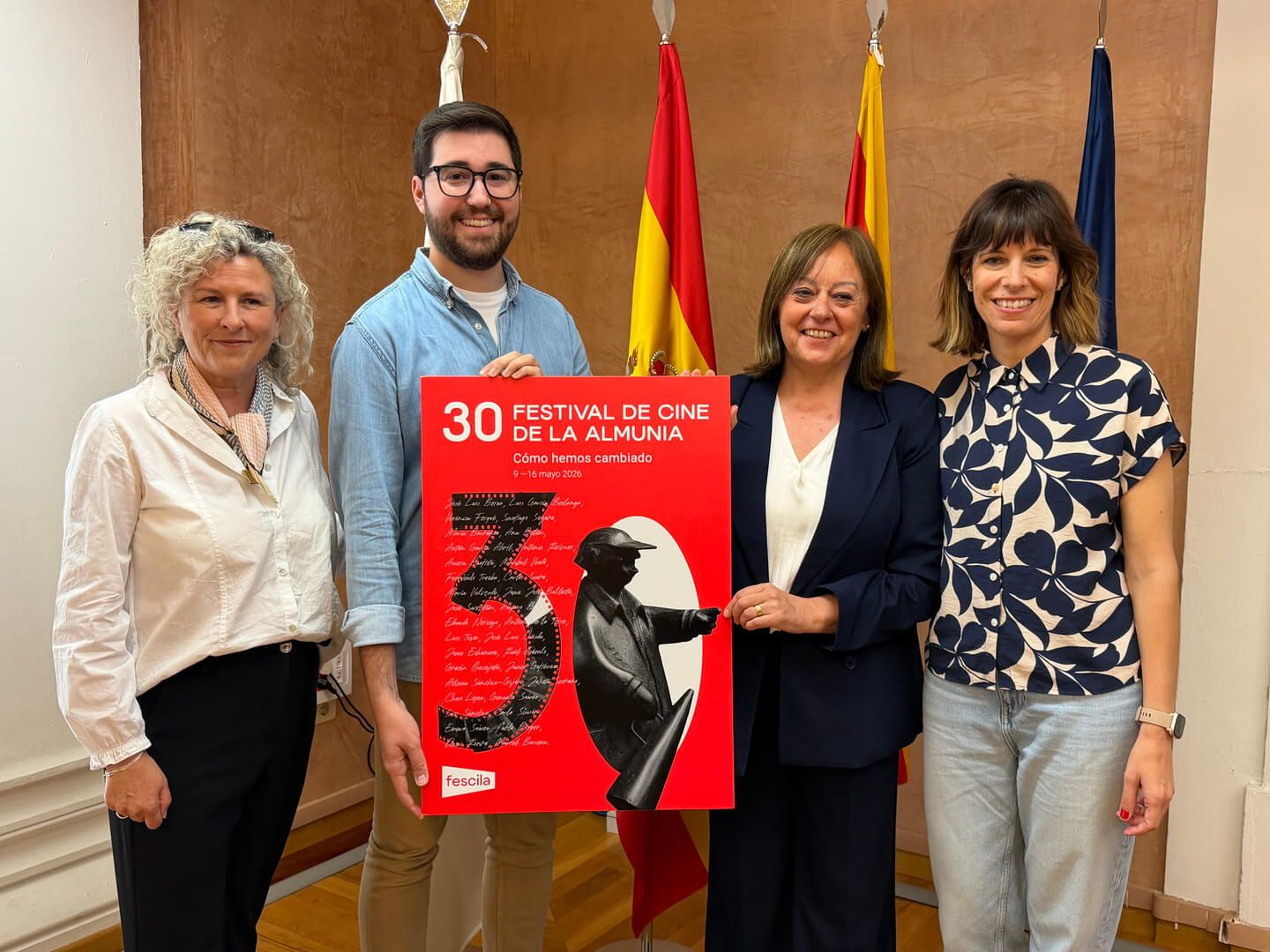 Los directores de FESCILA posando en el Salón Blanco con el cartel de la 30ª edición.